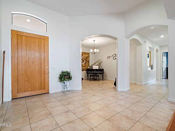 Welcome to Mesa NorthGrove -this beautiful home has 6 bedrooms,4 full bathrooms and a 25,000 sqft resort like backyard. Gourmet kitchen features gas cook top, Corian countertops,42' maple cabinets a working island, bar seating, eat in kitchen and great room w/gas fireplace. The primary bedroom is spacious & has dual vanity ensuite,w/plenty of storage, walk in shower, garden tub, walk-in closet, w/a private door to the back yard oasis.The second primary suite has a private entrance off the front of the home, making it ideal for a MIL suite, professional office, or multi- gen private wing. One of the additional bedrooms also has a private en-suite, the other rooms are sizable to accommodate all or flex spaces as needed. The formal dining room is currently being used as their beautiful music room or to use as you desire. The bonus living room is this family's awesome game room, use it as you wish, the possibilities are endless, YES, the pool table conveys with the home! The backyard is an entertainers dream w/tranquil water feature, room for dining, BBQing, gardening, swimming, lounging in and out of the sun. The custom and private ramada allows you to relax, nap, or have a fabulous al-fresco dining area. Run, play, or just enjoy your privacy, it awaits you. Original owner is selling this home.