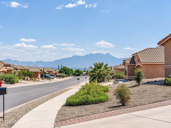 Nestled in the desirable Desert Creek neighborhood, this charming home sits on a generous lot, featuring an extra-long driveway beautifully trimmed with pavers and a low-maintenance front yard. The expansive backyard offers a clean slate, inviting you to create your dream outdoor oasis, all while enjoying breathtaking views of the Santa Rita Mountains from both the front and back yards. Step inside to an open floor plan that welcomes you with a bright, airy foyer. Tile flooring flows throughout the main living areas, while the two bedrooms and office/den are comfortably carpeted, with the carpets professionally cleaned for a fresh feel. High vaulted ceilings and large windows fill the space with natural light, creating an inviting and open atmosphere. The heart of the home is the kitchen, which features upgraded cabinetry, a gas range, and a center island offering additional storage and countertop spaceideal for both everyday living and entertaining. The spacious primary suite provides a relaxing retreat with its bay window that brings in soft natural light, a walk-in shower, dual vanity sinks, and a large walk-in closet for ample storage. As a resident, you'll also have access to Green Valley Recreation (GVR), which offers a vibrant lifestyle with an array of amenities, including pools, fitness centers, and a variety of classes and activities. This home is perfect for those looking to enjoy an active lifestyle in a serene setting.