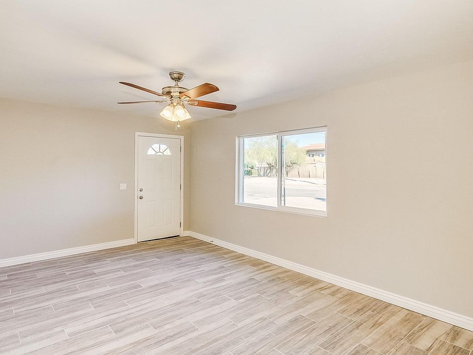 Fantastic remodeled 3 bed 2 bath home. New roof! New gas water heater. New A/C. New dual pane windows. Kitchen features new cabinets offering plenty of storage space & new gorgeous laminate counter-tops. Seller will provide new stainless steel appliances including gas range, OTR microwave & dishwasher with accepted offer. Spacious floor plan with all new elegant ceramic tile flooring & new baseboards throughout with new carpet & pad in all the bedrooms. Both bathrooms with new vanities, new mirrors & new beautiful tile shower surrounds with deco accents. All new two tone interior & exterior paint. New brushed nickel light fixtures, ceiling fans, plumbing fixtures & door hardware throughout. Back yard features beautiful mountain views & covered patio. Come see it today! Agent/Owner