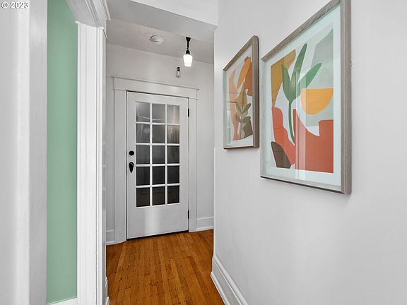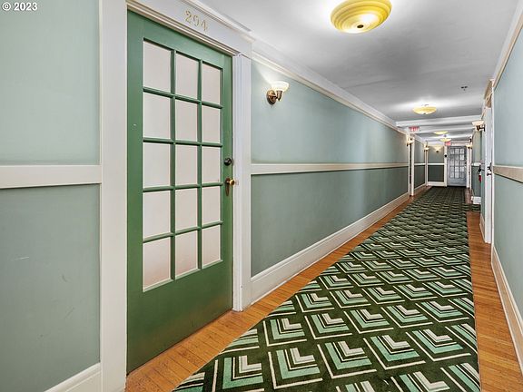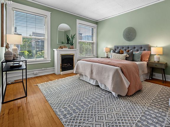 Petite, vintage condo located in the heart of NW Portland. This South-facing sunlit Pied-à-terre offers city views from the second floor of the Carlton Court Condominiums, a historic 1915 Classical Revival Brick Building with Art Deco vibes. At just 433 SF, this unit is efficiently designed for those on the go! Ideal for snowbirds, flight attendants, students, or anyone seeking a low-maintenance city retreat. No car needed! Shopping, dining and groceries are just outside your front door! And Portland Timbers/Thorns fans will love the proximity to the stadium. Inside the unit, you'll find separate kitchen and living spaces, a gas fireplace for ambiance, vintage fixtures, a clawfoot tub, and a spacious walk-in closet complete with in-unit laundry! The building has a secure, intercom entry and storage in the basement. Make this easy-breezy NW charmer your new home or investment property!