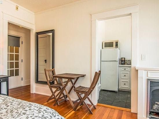 Newly renovated luxury studio with views of nw portland. Kitchen and bathroom both redone with exceptional style. Slate floors and subway wall tiles in both kitchen and bathroom, new stainless steel stove in kitchen with dishwasher. Bed is memory foam with down blankets and pillows. Flat samsung led tv and dvd player. . Has large storage closet with wood hangers and shelving and drawers for storage. Permit parking on the street.
