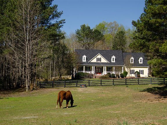 Stunning 1.5 story Southern Style Farmhouse on 13+ acres!Clover School District Tucked away from it all.The Landscaped Brick Walkway leads you to the Wrap Around porch to Welcome you home.Upon entering the Gorgeous wide plank oak floors lead you to the spacious living room, features large windows & cozy fireplace! Entertain your guests in the large dining room. New appliances in the kitchen,remodeled laundry. The first floor primary suite with fireplace and door to the back covered porch is a sweet retreat.The upstairs bedrooms with en suites and bonus room are perfect! An additional bonus room with private stairs can be used as an office, media or rec room!Stepping outside, the back porch includes a fireplace and fenced yard. Bring your horses, pasture is fenced & the barn is accommodating. The barn would also make a fantastic studio or guesthouse! The pasture leads to the 7 acre pond and Campbells Crossing includes riding trails. New roof,flooring, paint,fixtures,updates throughout!