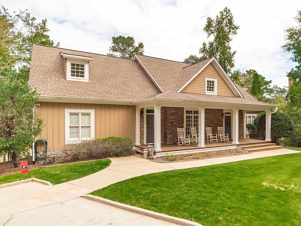 This lakefront home with beautiful cove view, is great for entertaining, boasting an open kitchen and main living area, as well as 4 bedrooms, and 3 1/2 baths. The living room has a vaulted ceiling, hardwood floors, and a wood burning fireplace with gas starter. In the kitchen, you will find an island, farm sink, two dishwashers, and Wolf six burner stove. The Master bedroom includes a fireplace, and en-suite bath with Jacuzzi tub. Bedrooms 2 and 3 on the main level share a Jack-&-Jill bath. A screened porch overlooking the lake, features a fireplace, allowing you to enjoy outdoor living all year long. The lower-level does not disappoint with its game room and bar area. In addition, the lower-level offers an additional bedroom, perfect for guests. This home offers a 2-car garage connected to the lower-level. There is a walking path to the private max dock and the beautiful Lake Oconee. Conveniently located near the main Reynolds gate, as well as the Preserve course and eighty8 Kitchen + Cocktails. Furnishings available under separate agreement. Buyer will need to honor current lease agreement which is in effect through 5-31-2021. Seller is making a Club membership available.