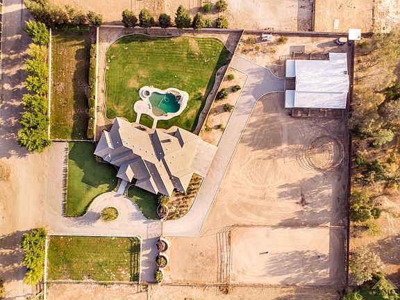 Equestrian Ranch is a horse lover's dream with ROOM TO ROAM- In a split-wing Country Estate home with Stables and Riding Arena! Gracious, gourmet kitchen is ideal for entertaining with a walk-in pantry, generous granite-slab counter spaces a built-in hutch with coffee station, sub-zero classic French door refrigerator, Dacor double-ovens and warming oven as well as two islands; six-burner gas cooktop and the second prep island designed with lots of seating. Mature park-like front and rear landscape, 4 car garage, covered rear patio with ceiling fan and built-in BBQ + preparation sink, spa and a custom pool with slide, ideal for entertaining. This state-of-the-art equestrian center is complete with beautifully constructed stables w/tack shed, riding arena, round pen, exercise paddock, two grazing pastures and birthing stall. see Video attached