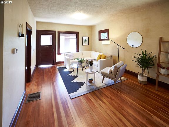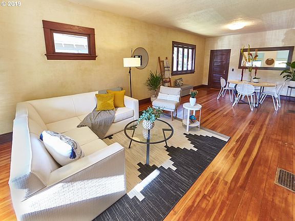 Stunning Craftsman with custom finishes. Oil wash wall finish & speciality wood stain.Open living room & dining room flow into a cook's kitchen with custom wood cabinets, stainless hood, gas range. Sunny eating area. 2 private main floor bedrooms & bath with heated hexagon tile floor . Upper level non-confirming bedroom has cork floors & skylights. Partially finished lower level with permitted bathroom. Private yard, deep driveway. [Home Energy Score = 4. HES Report at https://rpt.greenbuildingregistry.com/hes/OR10091880]