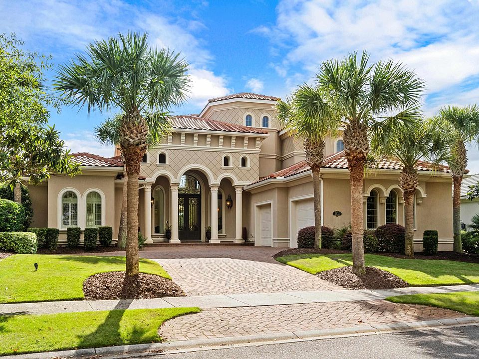 Located in the coveted Grande Dunes community, this home will WOW you! From the moment you enter through gorgeous double door, you will immediately notice the flooding of natural light, the expansive ceilings and a magnificent spiral staircase welcoming you home. With 3 bedrooms, 4 full bathrooms, 2 half baths, formal living and dining rooms, a chefs kitchen along with a game loft and theatre room, there is space for the entire family with privacy for all! The outside of this home is spectacular and represents the ideal balance of indoor/outdoor living. You have a gorgeous pool with multiple fountains, a hot tub, outdoor fireplace and a spacious deck area. There is also an upstairs balcony with fantastic views of the lake, the fairway and the bridge. Catch the perfect sunset out here while relaxing with your afternoon drink of choice. The Grande Dunes is a 2200 acre development filled with lifestyle opportunities and endless amenities. The owners at Grande Dunes enjoy a 25,000 square foot Ocean Club that boasts exquisite dining, oceanfront pools with food & beverage service, along with meeting rooms and fun activities. Additionally, the community has two 18-hole golf courses along with several on-site restaurants, deep water marina, a tennis facility and miles of biking/walking trails!