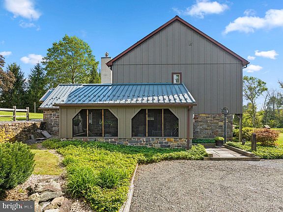 "Sweetbriar Barn" This custom designed Bucks County barn comes with a slice of heaven…. Tucked in the hills of beautiful Bedminster, It’s a short walk to the Lake and Nockamixon State Park. Stone retaining walls, lush planting and a large pond bordered by woods, enhance the stunning 3 acre setting of this unique home. Several additions and many upgrades over the last 50 years have enhanced the design of the original. The dramatic core of the house is a sunken two-story great room with a floor to ceiling fireplace highlighted by an interior rounded chimney with antique “hand-cast” brick. Framing a double set of sliding doors overlooking the pond is the second story library balcony, accessed by a curving wrought-iron staircase from the adjacent open dining room. Designed for a grand piano, the first- floor music room and a second-floor gallery with a sitting room overlook the great room. But the heart of the house is the kitchen/gathering room. A vaulted ceiling with a rear “window wall” highlights a spacious workspace with two separate sinks and an oversized granite center island with built-in desk area, ideal for informal buffet gatherings. Appliances, built into custom Amish cabinetry and antique brick, include Sub Zero refrigerator, solid surface Décor range and conventional/convection wall oven with separate microwave oven. Extensive cabinetry includes mega storage space and an entertainment center sufficient for large-screen TV. A functioning coal stove with an antique brick surround adds ambiance and supplemental heat in winter. Adjacent to the kitchen, the large flagstone screened porch is perfect for 3-season dining/ entertaining – or lounging! The first level also includes half-bath, access to large storage/pantry room with laundry, and steps to basement with mechanicals and additional storage. The staircase from the first-floor hall accesses three original bedrooms, study, and two full, recently remodeled, baths. A second staircase leads to the new main bedroom suite with cathedral ceiling, extensive closet space and designer bath with separate tub and shower. All bedrooms are connected by the study. The detached 3 bay cedar garage includes a workshop with reinforced storage above in one of the bays. All of the mechanicals of the house have been upgraded with superior components. List available in separate attachment. So near – shopping, major roads to Phila and NYC – and yet so far…. Easy access to Doylestown, New Hope or Perkasie. Excellent Pennridge Schools. Exceptional country living in a singular setting!