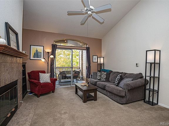 Great opportunity to own a beautiful 1 bed/1 bath condo in Littleton! This contemporary home on the top floor offers a nice open floor plan with covered balcony that overlooks a grassy area with mature trees. This is a great location close to the Highline Canal with miles of trails for walking or biking. The interior is vaulted with a nice open living room and gas fireplace; the adjoining nook will fit a desk or can be used as cozy space to read by warmth of the fire. Enjoy an efficient and roomy kitchen with stainless appliances and ample cabinet space, opening to the dining and living areas. The spacious bedroom has a walk-in closet and full bath directly across the hall. This residence has been well cared for and is move-in ready. There is a one-car detached garage (#199) with space for storage, and the balcony has a storage area as well. You are conveniently located just off of Mineral with close-by shopping and easy access to Santa Fe & C-470. Welcome home just in time for holidays!