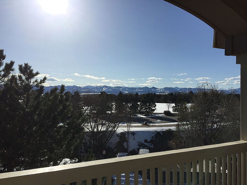 West facing covered balcony with unobstructed 180 degree view of the front range mountains. Desirable location next to High-line canal trail and Writers Vista park. Easy access to Littleton/Mineral Light rail station and Aspen Grove shopping. Remodeled in 2015; complete kitchen, with granite countertops, new cabinets and appliances. There is a clubhouse with exercise room, pool and hot tub. Living area has vaulted ceiling. Condo comes with garage and dedicated parking space.
