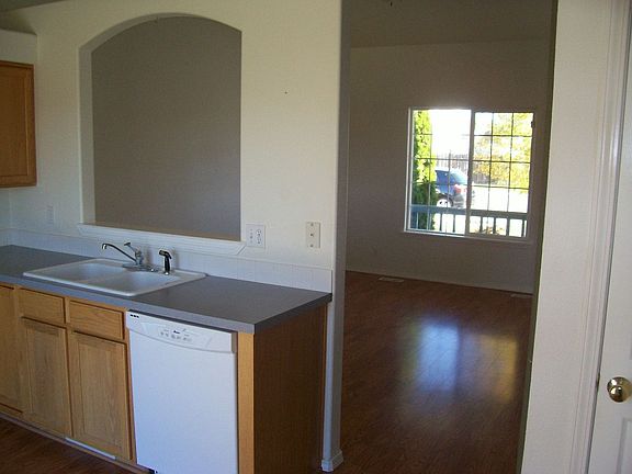 Nice, three bedroom/two bath home in Victory Subdivision. Good sized living room with laminate flooring flows into the dining area and kitchen. Opening between the kitchen and living room allows you to keep an eye on things. Two bedrooms downstairs allows the upstairs to be devoted to the master area and gives privacy. The home has wonderful curb appeal, fenced yard, full sprinklers and a nice front porch area. There is extra, gravel parking to the left of the garage.This home will allow pets within company guidelines and with additional pet deposit.