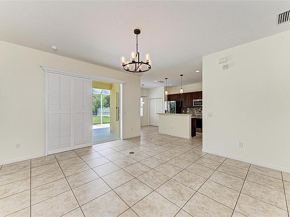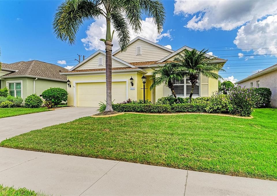 Neal Communities hidden gem in the gated community of River Sound. Welcome to 1631 White Breeze Cove, a move-in-ready residence with three bedrooms and two baths offering 1,872 total square feet of single-level living on an 0.18-acre homesite with no flood insurance required. Designed with an open-concept floor plan, the home features ceramic tile flooring throughout the main living areas, upgraded lighting and plantation shutters. The kitchen is light and bright, equipped with new LG appliances, including a gourmet refrigerator with oversized ice sphere capabilities, a breakfast nook and ample cabinetry. The spacious primary suite includes new carpet, a walk-in closet and a walk-in shower. A split-bedroom layout offers privacy for guests or family. The newly installed and freshly painted screened lanai expands the indoor-outdoor living area and overlooks a fenced-capable backyard with green space views, tropical landscaping and fruit trees. Additional highlights include hurricane shutters, an irrigation system, a freshly painted two-car garage with storage and a new roof in 2024. River Sound is a charming, Key West-inspired neighborhood featuring a community pool, two dog parks, a playground, a fishing pier with an observation deck, and tree-lined streets. The low Homeowner’s Association fees, no Community Development District fees, and proximity to shopping, dining, Costco and the beaches of Anna Maria Island enhance the home's appeal. Ideal as a primary or second residence, this home offers flexible terms and is move in ready.