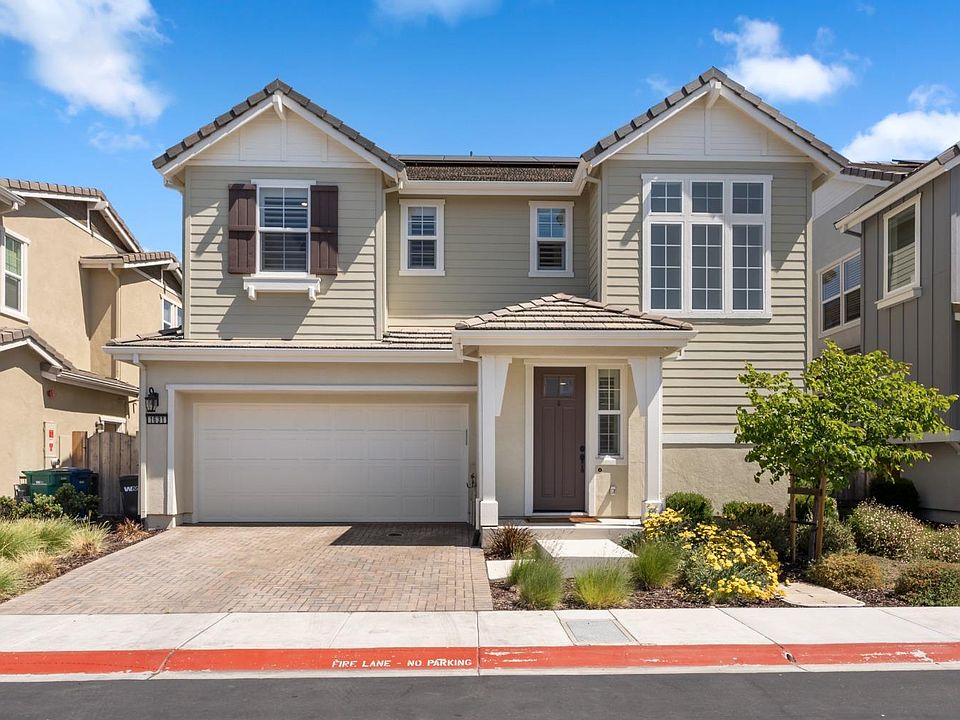 Discover an exquisite 4-bedroom, 3-bathroom home in Hayward, CA, boasting 2,033 square feet of carefully designed living space. This remarkable 2-yr old residence harmonizes elegance and functionality, showcasing premium features to enhance your modern lifestyle. Step inside to find epoxy floors in the garage, combining durability and contemporary style. Enjoy the convenience of a tankless water heater, EV electric port, & owned solar for your energy efficiency needs. The laminate flooring throughout the main living areas exudes a sleek appeal, complementing the dove grey cabinets and white glass subway tile backsplash in the kitchen. With quartz countertops, stainless steel appliances, under cabinet kitchen lights, and a vent hood, the kitchen becomes a culinary haven. This home boasts a versatile loft, offering a flexible space for a home office, entertainment area, or even a playroom. Upgraded carpets adorn the bedrooms, providing plush comfort, while the bathrooms exhibit modern fixtures and finishes. Embrace the natural light that bathes each room, enhanced by wood blinds for privacy and ambiance. Appreciate the Nest thermostat for efficient climate control. The paved backyard patio with artificial grass invites outdoor relaxation. Don't miss your chance to make this yours