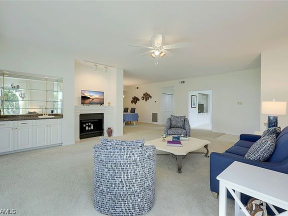 Fairway Woods II, First Floor, 2 Bedroom, PLUS Den, (could be a third bedroom), 2 Full Bath, Spacious Attached Garage. New Roofs, Paint, Lighting, Wonderful Community Pool, Spa, Club Room located Just Steps from the Back Door! Freshly Painted Inside, Low Nap Carpet, Tile, Nearly All the Furnishings are New and Come with the Home. Window Treatments. Granite Wet Bar, Wood Burning Fireplace, TV's, Both Closets have New Closet Systems. New Epoxy Floor Coating in Garage. Cabinet Storage in the Garage as Well with a Utility Sink. FWW II is located Just a Short Walk to the Country Club. Some amenities listed require membership in the CC. The Forest is Full of Wildlife of All Kind! Over 8 Miles of Sidewalk, Lighted Streets, 2 Manned Gates, Professional Mgt. Pets Permitted with Approval. Children's Park. Bike to Lakes Park for Market Day! Bike to Nearby Restaurants! RSW Just 15 Min, Sanibel 20 Min, FMB 20 Min. Restaurants, Shopping and Ice Cream Shops Everywhere! Come Live & Play In The Forest!