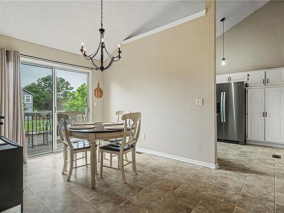Property has experienced some settling and structural inspection has recommended 8 piers be installed. Seller is willing to do work prior to closing or offer credit/price reduction equal to the amount proposed in bid. Great location in south Olathe. This front to back split level has an open floor plan creating a spacious and inviting atmosphere. Enter from the front door into the large living room featuring a cozy gas fireplace and impressive vaulted ceiling, perfect for relaxing or entertaining guests. The updated kitchen boasts granite countertops, newer stainless-steel appliances, and easy-care tile floors that extend into the dining room. From the dining room, walk out to the upper deck through the sliding door and enjoy your morning coffee with a view of the expansive backyard. The large primary suite is a peaceful retreat, complete with a coffered ceiling, big walk-in closet, and a private bath featuring a tile floor, double vanity, and shower. Two additional bedrooms and a second full bath provide plenty of space for all. The finished walkout basement offers a flex room that could be used in a variety of ways; family room, playroom, office, exercise room or guest room! There is also a large, tiled area that serves as a great drop zone as you enter from the garage or backyard. Step outside to the extended lower deck and discover a huge, fenced backyard with a firepit area, perfect for hosting gatherings or enjoying quiet evenings under the stars. This home also offers plenty of storage in the sub-basement and an extra-large, oversized 2-car garage. Don't miss out on this incredible opportunity to own a fantastic home in South Olathe!