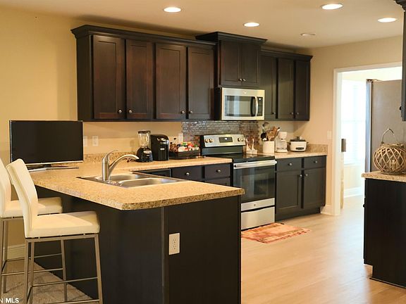 Great Location!! Easy access to I-10 for all of Baldwin County's special amenities, commute to work in Mobile or Pensacola! This is a beautiful 3 bedroom 2 bathroom all Brick Home! Large kitchen with crown molding and cute bay window dining, great spot to have your morning coffee, and enjoy a meal. Master Bedroom features a walk in closet, and double sink vanity, and a garden bath/shower combo. Brushed nickel light fixtures, Price Phister brushed nickel plumbing fixtures, stainless steel GE stove, dishwasher, microwave. Gutters installed! High Efficiency double pane windows with a tilt in option for easy cleaning. This home has been well cared for and is in New Condition!