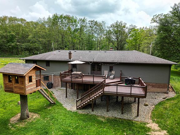This stunning home can be yours in just a few weeks. Just set up your showing and I will walk you through the steps to a quick and easy closing. 2688' of living space, enough room for family gatherings and a place for your quiet time. 4 bedrooms, 2 1/2 baths, large open kitchen/dining room with a slider to the deck overlooking the backyard and a view of a beautiful tree house. The home was built in 1975 with great detail throughout. New central air conditioning in 2018. Ceramic and carpet flooring throughout. Two fireplaces, one in the living room and one downstairs in the rec room. The 38 acres is rolling with woods, open areas. Deer are plentiful as the property butts up to the ANR pipeline. Don't pass this one by, it is a gem!!! I would love to schedule your showing today