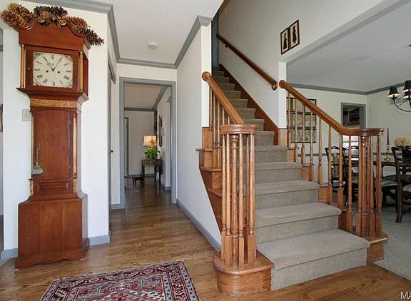 Totally renovated. Move in ready. Appealing, well-sited and excellently maintained. Four bedroom, 2.5 bathroom, two story in Chesterfield Valley. Colonial charm with modern amenities. All new kitchen with Silestone counter tops stainless appliances and solid oak flooring. Ceramic bathroom floors. Four beautiful bay windows. Finish work includes crown moulding, chair railing, built in bookcase, six panel doors, French doors, four foot by five food plate rack, vaulted ceiling and sky light. Family room features a large bay window, wood burning fireplace and solid oak flooring. All paint colors as well as Karastan carpet chosen with historical colors in mind. Compelling exterior curb appeal. Walkout, patio and deck with lovely views. Front side walk and all landscaping replaced and redesigned in 2013. Cul-de-sac location in Rockwood School District. Home Warranty offered to buyers. Owner/Agent