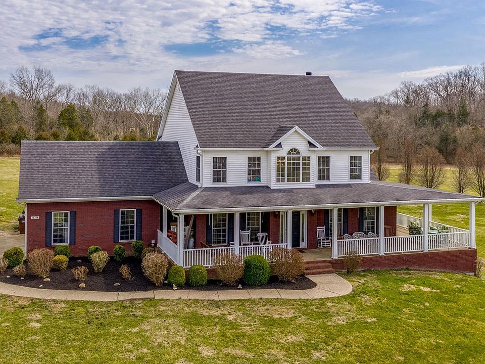 Updates, Open, Spacious, 1st Floor Master, Two-Story Walk-out on 5 Private Acres in Ridge Wood Farms. You'll love the privacy just 15 minutes from Middleton and 5 miles from the Gene Snyder at Taylorsville Road. Country living with a City convenience in one of Fishersville's most Elegant Neighborhoods. This custom-built brick and vinyl home (with a walkout basement) offers a level, private, tree lined 5 Acre Tract. Walk past the relaxing wrap around porch and into an inviting foyer with 2 story ceilings & dramatic staircase. Among the upgrades Hardwood Flooring in the 1st floor master bedroom, foyer & formal Dining Room. The Kitchen has been upgraded with stainless steel appliances and features larger cherry finish wood Cabinetry with double oven (the top one is a convention oven)