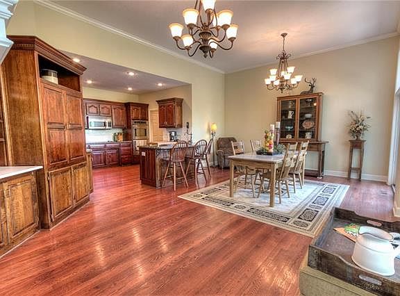 This private pristine 1.5 story home Situated on 20 acres is a sanctuary. Chef's kitchen boasts granite counter tops, breakfast bar seating. Abundant Cabinetry ,Formal dining ,Great room with see through fireplace to Hearth Room, built-ins ,floor-to-ceiling windows, take in the views ,Finished Lower Level with bar ,Perfect home for entertaining , In ground pool, Stocked Pond , Beautifully landscaped yard, You'll never want to leave! Zoned Heating and Cooling, 35 minutes to downtown KC