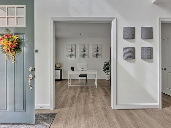 Stunning modern home with open concept, modern laminate flooring and abundant windows to flood the home with light. Half acre lot on a street without thru traffic. The contemporary finishes include quartz countertops, custom cabinetry, professional style appliances and designer light fixtures. Flexible layout offers multiple work, study and play spaces on three levels. The gathering spaces are generous and well designed. The home includes an organized mudroom, butler's pantry and food pantry and many large closets. The second floor has 9' ceilings and a luxury owner's suite with spa style bathroom with double entry shower and seat plus two wall-in closets. An entertainment room is over the 3-car garage and could easily convert to a fifth bedroom with the addition of a closet in the alcove. The third floor features a 16 X 36 gym and play area with removable interlocking rubber flooring. Clear view of cul-de-sac from the spacious front porch. 20 X 24 private paver patio and composite deck. The large level rear sod yard with irrigation is ideal for play. Community pool with splash pad and playgrounds. Top rated Cosby High School and new Publix shopping center. Super clean condition!