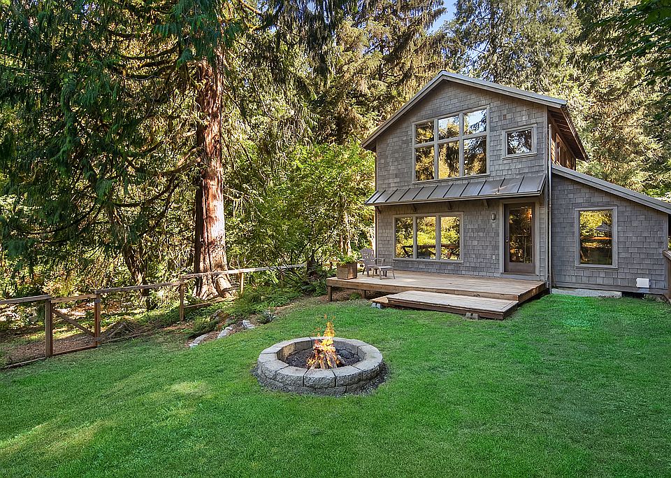 What an opportunity, a magical setting with two waterfront homes! Welcome to the idyllic, creekside cottage where privacy abounds. A great room concept with soaring ceilings, plush new carpet, a cozy wood stove and views to the soothing water way. The spacious kitchen has a breakfast bar, walls of pantry space and stout wood floors under foot. You'll love the large laundry room, the newly refreshed main bath and if you work from home it is easy here with a large office alcove including built-ins. There is a main floor master ensuite with a jetted tub boasting walls of windows, overlooking the creek. The upper level could be another bedroom, a second office or a bonus room and office, you decide! Head outside to the fenced yard and relax by the fire pit and listen to the soothing sounds of rushing water. Now meander down the path to the pond house. This home is truly a storybook setting. Walk into an open floor concept with high ceilings and new grey flooring underneath. Light and bright with windows that act like doors. A stylish kitchen with stainless appliances and river views while you cook. A dining-family room combo, built in shelving and a cozy fireplace to set the mood while gazing at the trout filled pond. Enjoy a main floor master suite with a new quartz vanity, subway tile tub and trendy tile floors. Wall of closets and a large utility room within the master wing, perfection! Go to sleep while watching the moon rise over the glistening water. Upstairs you'll find a 1/2 bath and an extremely large bonus room that could act as a multi purpose area; bedroom, office, exercise- all in one. Head outside to the tranquil grounds that include pathways to the creek to dip your toes in or theres a fenced garden area, go deeper into the shy 5 acres and you will find a grassy meadow with deer grazing. Don't miss the huge shed and so much more! call for your private tour today.