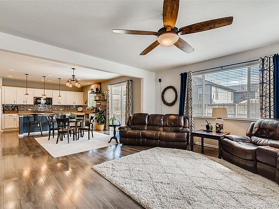 Welcome to the home of your dreams in the quiet streets of Fronterra Village. Nestled in between parks and schools you will find that the location can't be beat. Upon entering the foyer, you will be flooded with abundant natural light. The gourmet kitchen features a large island, granite counter tops, double ovens and a walk-in pantry. The kitchen opens to the grand family room with a cozy fireplace and wired for sound. You will be hard pressed to find a better entertaining space. A formal dining room, office and powder room round out the open main level. Walking upstairs is the loft that adds an extra flex space. Fall in love with the south facing master suit, featuring an en suite 5-piece bathroom with His and Her walk in closets. The laundry room is conveniently located upstairs with gorgeous new tile floors, one of the many upgrades throughout this gorgeous home. Outside find comfort in all times of day with the sunshades that pull down and hook to the covered cement patio. The landscaping in both the front and the back have been meticulously maintained and ready for your enjoyment. In addition, there is an over sized 3 car garage with a 220 volt hook up that makes tinkering a dream year round. The full unfinished basement is perfect for storage and adding you own personal touches. This house will not last long. Come take a look today!
