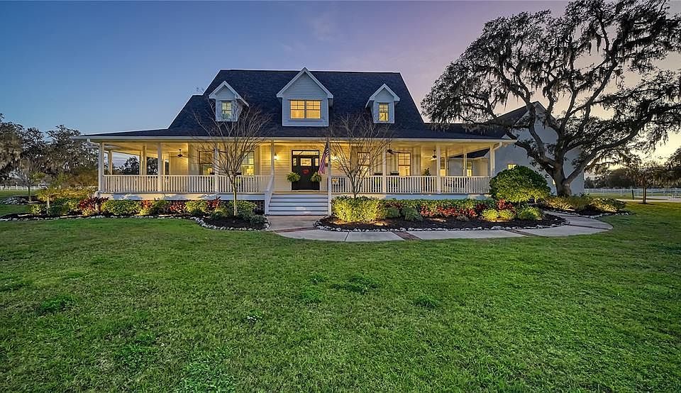 Picturesque country home in Sarasota Ranch Club! Situated on over 9 acres, this stunning custom home offers 4 bedrooms, 3 full baths, 2 half baths, salt water pool/spa, pond, barn with 4 stalls and 2 paddocks, 3 car garage, solid wood floors, wrap around porch, board and batten walls and custom millwork throughout, including tongue and groove cypress ceilings, plus a large bonus room upstairs, mud room, laundry room and tons of storage. The entire property is fenced and the owners have meticulously maintained the home with recent updates including new roofs on both the house and barn (2021), hurricane garage doors (2022), hurricane panels (2020), 2 water heaters (2019 & 2021), two 4 ton AC's (2016 & 2019) with maintenance agreement, pool heater (2022) and dishwasher (2021). Truly Nolen preventative underground termite system with annual inspection. No water bills here thanks to two wells. Main well has new pump, softener, filtration, pump, controls, piping (2022) and a new aerator (2023). This beautiful neighborhood of 10 acre homesites is gated and has bridle trails for the equestrian in you. Sunsets are something to behold from your back porch overlooking the pool, pond and pasture. If you're looking to escape the city and enjoy the tranquility of country living and all it has to offer, then this classic gem is for you.