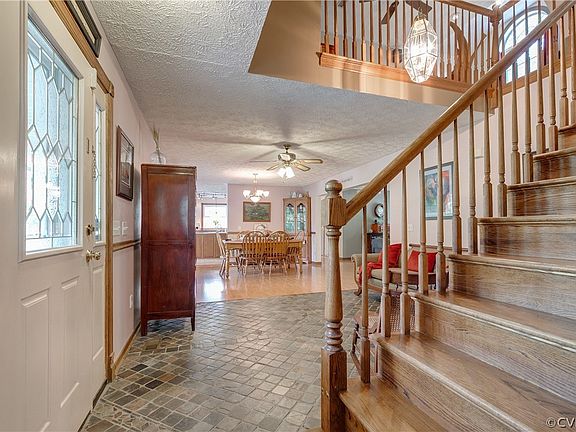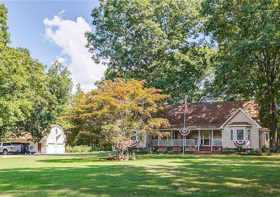 Country retreat and entertainer's paradise. This delightful custom Ranch home has 3255 sf, 3 bedrooms, 3 baths and is nestled on one acre near historic Fork Church. The front porch is wide and welcoming with all new balustrades and rails. Foyer has intricate, yet subtle, slate tile work that connects with hardwood floors on first floor. Dining room opens to the large family room with gas fire place. Two sets of glass sliders lead to expansive back deck with views of the lush back yard. Serene natural setting. Beyond the deck is a fire pit for fun gatherings. The spacious eat-in kitchen is filled with sunlight and warm tones of the oak cabinetry. Quiet primary bedroom has fp, sitting area, en-suite bathroom with jetted tub, zero entry shower and walk-in closet. An additional first floor bedroom, with adjacent full hall bath, completes the first floor. Upstairs is an open loft area, hall bath and comfortable bedroom. An additional room, with fun, planetary mural, is used as bedroom #4 but could be a Rec room. 624' well depth on aquifer.