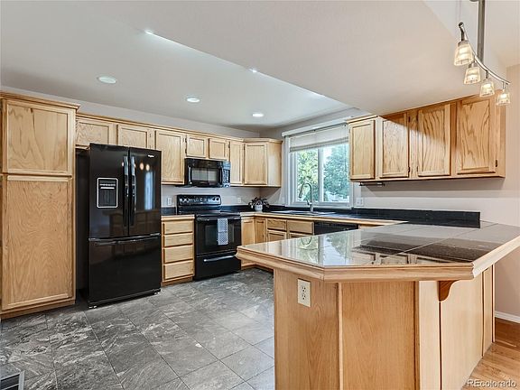 Looking for something a little out of the ordinary? This might be the home for you. It features 3 primary suites with en-suite baths, one on each floor. There is a large living room with vaulted ceilings and lots of light. The kitchen has been enlarged to accommodate multiple cooks in the kitchen at once. That also means there is extra storage space and more counter space than you might have expected. The family room with its beautiful hardwood floors is adjacent so you never feel left out if you are in the kitchen. Upstairs, the former 2, small bedrooms have been combined into a large primary suite with large en-suite bath and mirrored closet. The taller vanity and dual sinks are a pleasure to use. Just outside the French doors from this room is a loft at the top of the stairs from the main floor living room. This is the perfect corner for paying bills, computer work or just getting away for a few minutes and reading. There is a partial basement that is fully finished as well. There you will find the 3rd primary suite with en-suite bath. The Egress window also provides lots of light. The laundry with full size side by side washer and dryer are here, along with a brand new water heater and the furnace. You will see an attached 2-car garage when you arrive but there is a second 2-car garage in the backyard, behind a privacy fence and with a 12’ wide gate so you can park all your toys inside your fenced yard with ease. The low maintenance yard also features a huge deck for all your entertaining.With all these features, this home is also located in an ideal location, near bus routes and light rail and shopping conveniently close by. It is a 20-minute trip to DIA via E470 too. This home has been well maintained and is move-in ready. Make it yours today!