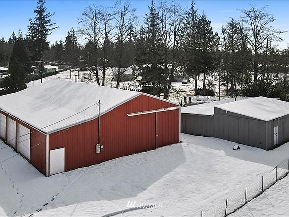 Remodeled rambler with fenced pasture land for animals. 3 large outbuildings totaling approximately 7,000 square feet. Private 1 Bedroom apartment in red shop. Red shop is approx. 50' X 75' with car lift. Approx. 30'X40' barn with horse stalls, additional shop approx. 40'X42' plus a covered storage area measuring approx. 20'X20'. Home features a fully remodeled kitchen with white cabinets, granite slab counters, subway tile backsplash and new stainless steel appliances. New white painted millwork throughout the home, new triple panel interior doors, newly refinished real hardwoods throughout most of the home, & all new plumbing fixtures. New exposed aggregate driveway. Fenced pasture to the right (north) of home is part of the property.
