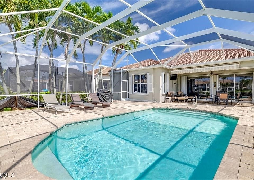 LOWEST PRICED POOL HOME IN COMMUNITY — THIS IS A GOLFER’S PARADISE! Located in one of the most sought-after private golf course communities in Southwest Florida, Lexington Country Club offers resort-style living just 10 minutes from Fort Myers Beach. This beautifully maintained 2-bedroom plus den, 2-bath POOL HOME overlooks the 10th fairway and features nearly 1,800 square feet of living space. Pride of ownership shows throughout with a NEW 2023 ROOF, new flooring, self-closing cabinets in the kitchen and bathrooms, crown molding, newer appliances, fresh interior paint, and shutters on all windows. The home also includes a transferable home warranty for added peace of mind. Enjoy relaxing or entertaining on the spacious screened pool deck—perfect for BBQs, gatherings with friends, or simply unwinding while taking in the golf course views. Lexington Country Club is a private, gated community offering a championship golf course, putting green, community pools, tennis, bocce ball, fitness center, and NO CDD fees. Voted one of the safest and best golf communities in SWFL, Lexington CC is centrally located near the beaches, shopping, dining, and hospitals. This property INCLUDES GOLF MEMBERSHIP. Members pay only $22 per round for cart fees. SELLERS ARE HIGHLY MOTIVATED.