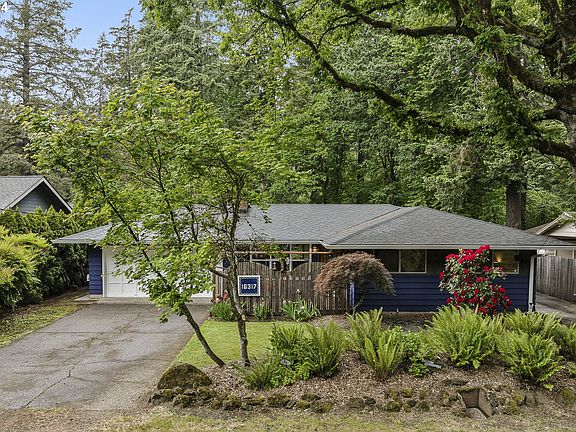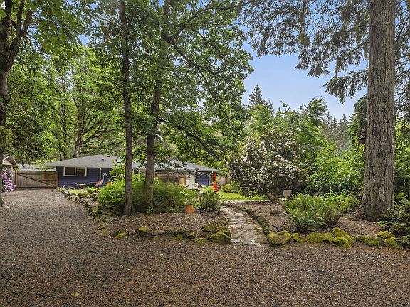 Rare one-level mid-century Lake Oswego home tucked away on a quiet and peaceful side street on a large, flat, half acre lot that is full of gorgeous gardens and carefully managed trees. There is a 1,700 square foot wood-constructed shop, covered car port and private gravel turn around towards the back of the property affording enough space to accomodate all of your toys or storage needs. New systems include: septic (2017), extensive tree work (limbing and cabling, annually since 2016), new metal siding on shop (2021), new fences and gates around property (2021), new 40 year roof and gutters (2023), & new electrical panel and outdoor power (2019). Your children will attend top rated Oregon schools, including the brand new and highly anticipated River Grove Elementary School. Residents in this home also have access to Lake Grove Swim Park (no entry fees). Walkable to great restaurants and parks. A drive-by does not do this home justice; schedule a tour!