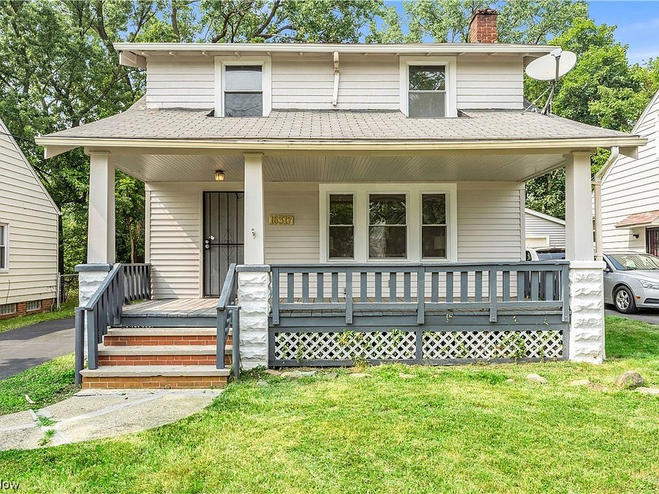 This beautiful single-family home is a solid opportunity for first-time home buyers or investors looking to build your rental portfolio! The renovated colonial has great updates inside & out and features a fully painted exterior, newer windows, newer furnace and hot water tank and more! Walk past the large covered front porch to the beautiful open living room with large windows allowing for tons of natural light! The main floor also has a formal dining room with charming built-in window seat and shelves and an updated kitchen with new stainless steel appliances along with gorgeous granite countertops and an stylish backsplash! Upstairs you'll find the updated full bath with eye-catching tiled tub surround and 2 spacious bedrooms with ample closet space! There is also a partially finished basement with tons of storage, an area for laundry and a convenient half bath! The backyard offers a covered rear porch as well! Great location in high demand area near highway access, close to shopping, parks, and more! This won't last long! Schedule a showing to see it for yourself!