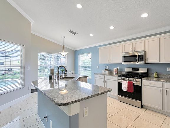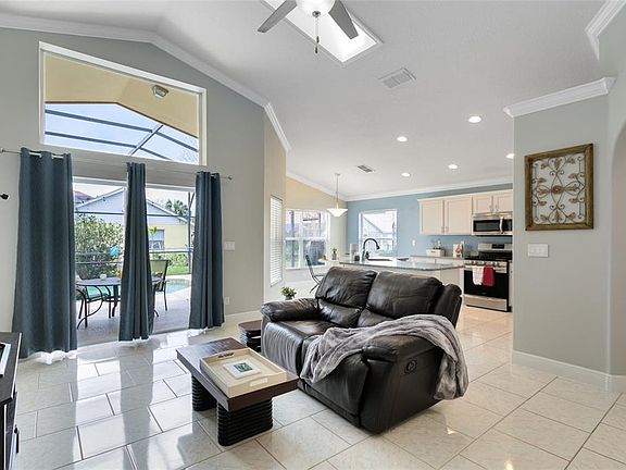 Multiple Offers. Seller reviewing highest and best at 5pm Sat, 3/26/2022. Celebrate by jumping into the pool & calling it Saturday! Plenty of FL Sunshine in this Beautiful 4/3 Orange Tree Heated Pool Home in Clermont. The Vaulted ceilings all to the space. 3 way split makes it extra nice for guests. Short term rental available in this community. Great full time or part time home. 25 minutes to Walt Disney World, easy access to shopping and restaurants. The Chef's kitchen is complemented with natural gas range and open to the living room with kitchen eat in area. Upgraded granite and Stainless appliances. Great pool views with french door access. Child safety fence. Pool bath access. Community has Tennis, Playground, basketball courts and a soccer field. Roof 11/2017; HVAC 7/2019, Pool Pump 2019, Hot water heater 2021.
