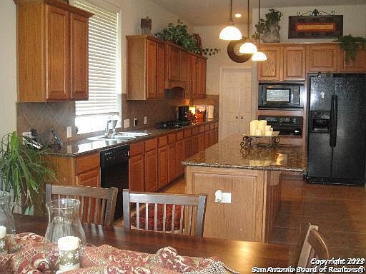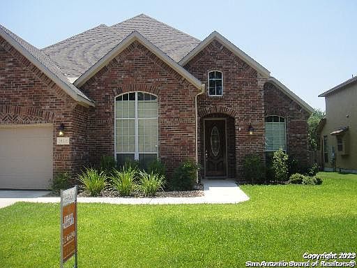 Coveted one-story Highland built in the sought after Sonoma Ranch. Hardwood floors, ceramic tile, 4 1/2 inch baseboards, 12 ft ceilings and floor to ceiling windows throughout. The entire back wall of the living and kitchen area is flanked with windows overlooking the generous sized covered patio, yard and greenbelt make this home perfect for entertaining and families. The split primary retreat entails a sep shower and jacuzzi jet tub. An oversized garage fits two full sized SUVS as well as a floored attic offer plenty of storage.