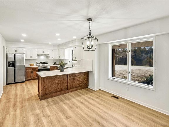 Privacy…privacy! Nestled on a wooded 3-acre lot surrounded to the north and west by trees, this secluded and spacious home sits on hilltop right outside of the Kearney city limits Looking to have the privacy of acreage without having to spend all afternoon mowing? Looking for a space to add an additional outbuilding on the property? This is for you! Attention to detail shows inside this home. Step inside and you will feel the warmth of the luxury wood flooring throughout the main level. Living room is light and bright with a cozy fireplace for cold winter nights. Large living room opens to the spacious dining room providing a great space for entertaining. Kitchen boasts new quartz countertops and stainless-steel appliances. Off the kitchen is a handy butler's pantry leading to the laundry room. Owner’s suite is on the main level with new flooring throughout and has an updated bathroom with double vanities and large walk-in closet. Owner’s suite also has its own private deck. Upstairs are three large bedrooms, loft area, and an updated full bathroom. In addition, two large storage areas finish out the upper level. The basement in this home will WOW you! There is so much space. When you walk down the stairs, the large living room contains carpet and the homes second fireplace. Step past the convenient half bath in the basement and another WOW moment with an extra recreation room finished with wood floors. Beyond the recreation room is a spacious oversized garage that walks out to the backyard. And if that wasn't enough, don't forget to check out the suspended garage space beyond the recreation room area. Why need an outbuilding when you have these two amazing spaces? However, there is ample space to build a workshop off your dreams separate from the home. This home has been 100% done for you. New paint, new flooring, new light fixtures, new bathrooms, new kitchen, new windows, new gutters, and more. Come check out this amazing dream home and make it yours today!