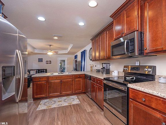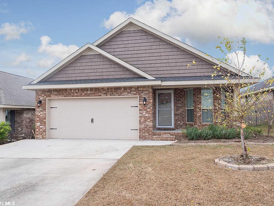 Fantastic Location!! This beautiful all brick 3 bedroom 2 bathroom home is conveniently located to I-10 for easy travel to Pensacola and Mobile areas. Step inside to be greeted by a cozy foyer, to the right there is a dining room with a bay window that let's in plenty of natural light. Large kitchen with GE stainless steel appliances, additional bar seating open to the spacious living room that is perfect for entertaining! The master bedroom has two large windows and large walk-in closet with built-in storage. The master ensuite features a tub/shower combo, double sink vanity and brushed nickel fixtures. From the living room walk out back into the screened in porch. Outside the screened in porch there is an additional patio area with a view of the lake that is the perfect place for grilling or sipping on your morning coffee. Additional features include: smart home technology, ceiling fans in all rooms, gutters, double paned windows with tilt option for easy cleaning, fruit trees in the fenced in backyard and tool shed.