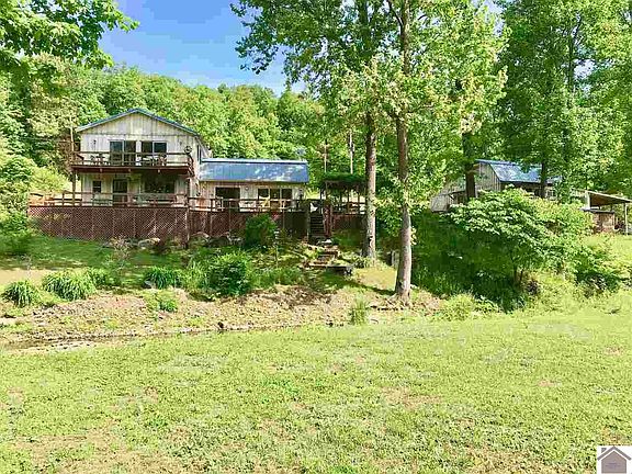 Country living at its best, 15+ acres featuring a beautiful 2539 sq.ft. home of rustic country design, overlooking a picturesque creek. Plenty of land for hunting, 4-wheeling, hiking, room for all your toys and a couple horses. Detached 1514 sq ft garage/workshop includes bathroom with extra living quarters/storage upstairs. Enjoy the peaceful outdoor space of decks, covered porches/pergola; all perfect for entertaining friends or just watching the deer and turkey as they come for a drink in the creek! This place has it all, koi pond, fire pit, storm shelter, and how about a chicken coop with a few free-range chickens? Located 7 mi. to Lake Beshear, 20 mi. to Lake Barkley, 16 mi. to Pennyrile Forest State Park, 6 mi. to downtown Princeton.