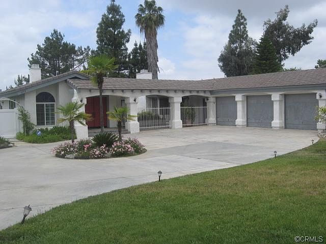 Beautiful single story home located in a prestigious area of Redlands, with short walk to golf course. Features step down formal living room with fireplace, formal dining room. Spacious kitchen with lots of storage and walk-in pantry. Kitchen nook with skylight. Indoor laundry. Family room with fireplace and wet bar. French doors off kitchen/ family room area. Guest half bath. Large master bedroom with sitting room, fireplace and walk-in closet. Full master bathroom with skylight over soaking tub. 3 more generous sized bedrooms, with full bathroom in hall. Access to courtyard from master bedroom, living room and family room. Secluded backyard with rose garden and mature landscaping and impressive views. Pool and spa. Large side yards. New fencing. Attached 3 car garage. Circular driveway. Indoor HVAC. New windows, A/C 3 years old.