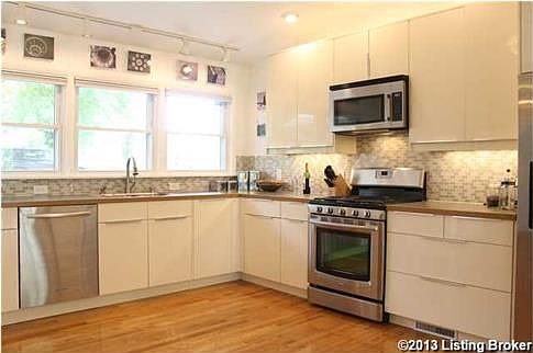 Genuine Mid Century Modern home with a Ranch Floor Plan and brand new great room with vaulted ceiling. Conveniently located inside the Watterson Expressway, this home is great find in the Upper Highlands. Featuring 4 bedrooms 2.5 baths, great room, 2 living rooms, an office and a walkout basement. Amazing new kitchen completely renovated in 2011 with new cabinets, glass tile backsplash and stainless steel appliances. The chef in your family will love the gas stove and light-filled counter space. A bright and spacious first floor office is a bonus with new tile and storage. The bathrooms are newly remodeled and exterior recently painted. There is a great deck off the main floor which extends from the living room to the master suite. The walk-out lower level has brand new carpet and leads out to a great backyard. This home also has 2 fantastic fireplaces (one gas, one traditional). The driveway and garage concrete are also brand new. Home has vinyl double pane windows and wonderful oak wood floors.