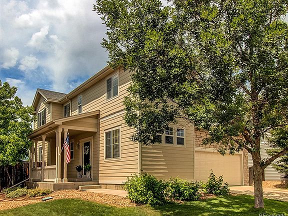 Welcome home to this beautiful 3 Bed/2.5 bath +Den/Office, 2,878 Sq. Ft. home with charming front porch in North Creek Farms. This home features a warm, yet open floor plan on the main floor, durable LVP floors in the kitchen, entryway/foyer, and upstairs bathrooms, white kitchen cabinets, gas fireplace and bonus den that can be used as an office, 4th bedroom/guest room, playroom or hobby room. Off of the large, 2 car garage+dog run you are welcomed by a laundry and mudroom room plus the front-loading washer and dryer are included. Upstairs is bright and showcases the over-sized 5 piece master suite with mountain views that offers a soaker tub, large walk-in closet, separate shower, double vanity and sitting room/nursery or additional office space. The 2nd and 3rd bedrooms are favorably sized and share a full bathroom along with deep closets. Out back you will enjoy the composite (trex) deck, garden, and privately fenced yard. Easy access to I-25 and just 30 mins to Downtown Denver and 35 minutes to Boulder. Amenities nearby include a neighborhood park with basketball hoop, playground and picnic tables, Larkridge Shopping Center, miles of walking trails, plus many shopping, dining, and entertainment options. Don't miss your chance to own this incredible home, schedule your showing today!