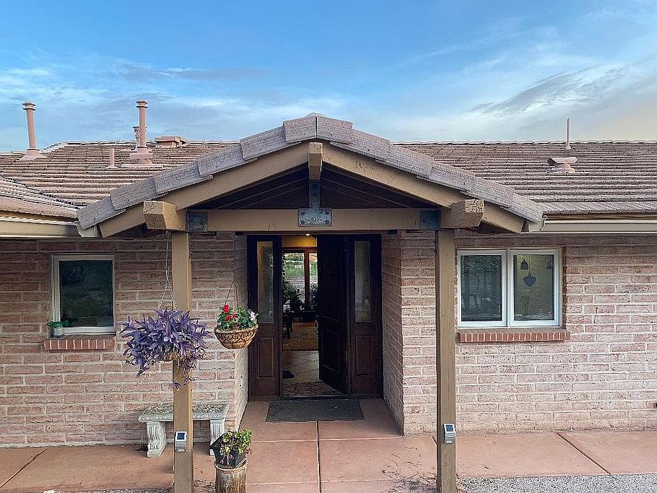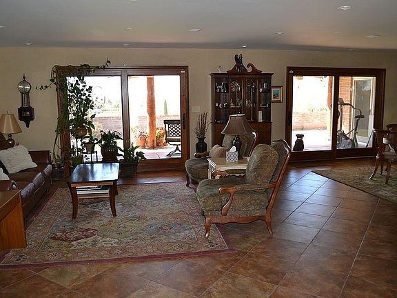 Stunning adobe ranch style, foothills home in Santa Catalina Estates! City and mountain views, quiet cul-de-sac, Sonoran desert vegetation, updated home with premium amenities. Custom mahogany front door leads to open living, dining and kitchen area with ceramic tile flooring. The kitchen has: custom hardwood cabinets; concrete counters; island with prep sink, storage and seating; Thermador hybrid induction cook top; Bosch dishwasher; convection wall ovens; double door pantry and Mountain views. Separate family room features mesquite wood floors, fireplace between built-in wall units, half-bath and laundry room w/ storage. Three bedrooms (2 master w/ walk-in closets and a bedroom/office/library) all with mesquite wood floors. Front MB has built-in vanity w/sink; French doors open to covered patio w/ Mt views. Extended back porch, accessed by four sliding glass doors overlooks the city. Adobe wall encloses lawn, flowering vegetation, BBQ/sandbox area and water harvesting tank. Additional amenities include: dual pane windows/sliding doors; recessed lighting; built-in speaker system, ceiling fans; wired security/intercom system; central water filtration; and tank-less gas hot water heater. Attached 2 car garage with storage and work/shop area. Extra parking in front. Please call 520-797-2587 for viewing.