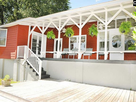 Comfortable Tri-level cottage, fully cyclone fenced yard, screen porch, custom decks to waterfront. Natural gravel beach, large dock on deep water cove near Lugoff side Left Wateree Dam. Great views of the lake from all bedrooms, office/game room and great room. Spectacular view from the covered front porch, sunroom, and entertainment decks lead all the way to the water and the long fishing pier which will accommodate 2 pontoon boats. Regulations prohibit docks this size for new construction but this one is "grandfathered in". Large concrete shop and storage area under house. Separate storage building w/electric. LE Water and/or optional deep well. House is 9.2 miles from center of Lugoff. New roof and paint 2010. One year lease for $1700 a month.
