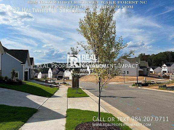 Be the first to live in this brand new modern, transitional style home minutes from Historic downtown Wake Forest. Welcoming front porch entry leads to an open concept first floor. Inviting family room with 36" gas fireplace featuring a custom mantle. Custom built mud bench/coat rack at entrance from 2 car garage. Hardwood style flooring throughout the main floor living. This dream kitchen is full of upgrades: custom cabinets, granite countertops, prep island with breakfast bar, pendant lighting, stainless steel appliances, gas range, stainless steel farm sink, tile backsplash, recessed lighting, and large pantry. You'll love to cook and entertain in this beautiful space! Solid oak staircase leading to 3 upstairs bedrooms with generous walk-in closets. Spacious owner's suites with tray ceiling and huge walk-in closet. En suite bathroom features ceramic tile floorings, dual vanity with custom cabinets & cultured marble countertops, and separate walk-in shower. Convenient 2nd floor laundry room. Enjoy summer on your backyard patio - perfect for a family BBQ! This home has all the modern amenities and energy efficient features. Be the first to enjoy this brand-new home. Close to the downtown Wake Forest restaurants, shops, and cafes. Application Criteria Credit Score Min 600 (soft pull) Income (monthly) 3X Monthly Rent Everyone over 18 must apply ($55 application fee applies to all applicants) No Evictions Criminal Background Screened If pets are allowed separate pet screening is required. All information provided on the application is screened and verified. Approval timeline varies based on the verification process. Average = 48 hours. AVOID RENTAL SCAMS: Real Property Management Impact is a licensed Real Estate Agency that exclusively markets and represents this listing. We do not advertise on Craigslist or Personal FB Pages. We would never ask you to wire money, request funds through a payment app for initial rent, deposits, or take the key after your showing to move-in.