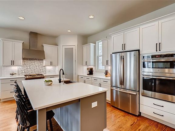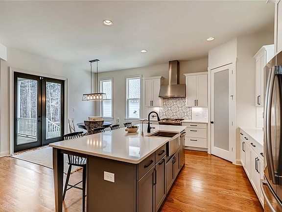 - Kitchen Features: Eat-in Kitchen, View to Family Room, Stone Counters, Kitchen Island, Pantry Walk-In, Cabinets White