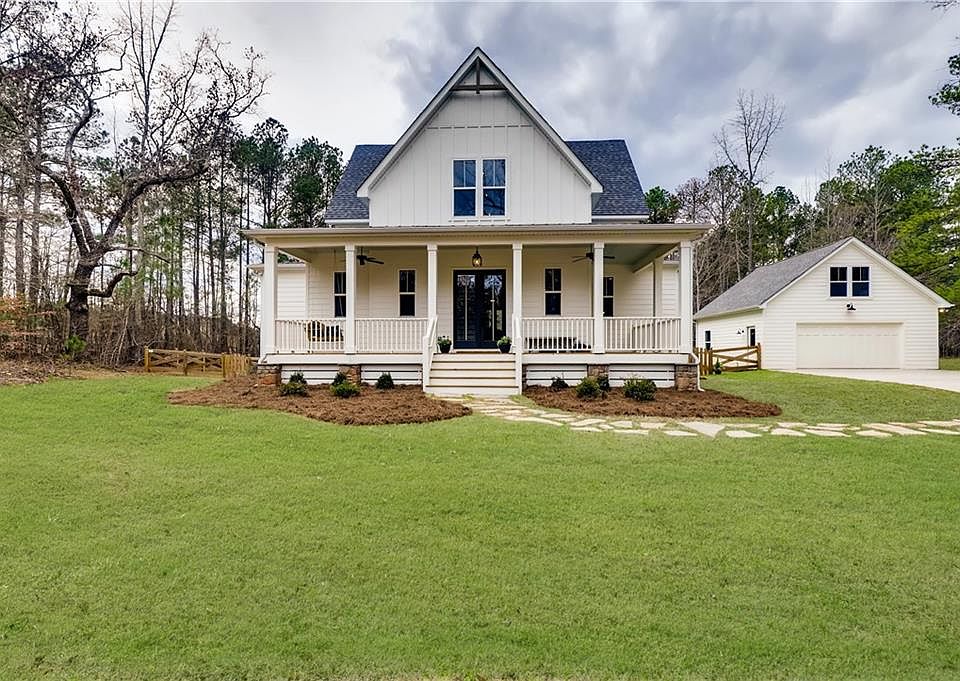 Wow dream home under construction alert Looking for custom farmhouse that looks like days gone but with modern conveniences and designer touches?Look no further.This spectacular plan sets on 5 scenic acres with no restrictions,and is conveniently located to ATL and surrounding areas.The house features an open floor plan with hardwood floors,hard surface counter tops,dual ovens,8 ft doors and 10ft ceiling&8ft doors.The master with on suite is located on first floor.The upstairs features 3 bed/2 bath with on suite for guest.Enjoy the spectacular porches to take in natures surrounding sites and sounds.This one of kind property also has an oversized detached garage with large loft for storage. Located not far from downtown Newnan Georgia and all it has to offer.