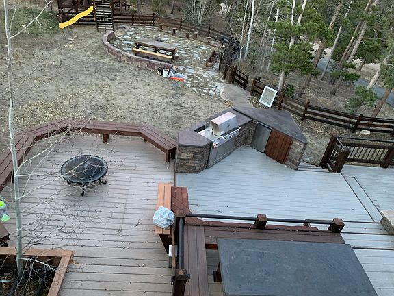 This is Colorado living! 30min to Golden, 20 min to Ned, 10 min to Black Hawk, 4 min to Rec center with indoor pool. Tons of hiking and mountain biking in Golden Gate State Park and Maryland Mountain just minutes away. On school route so roads are well plowed in the winter. Main house is approx 2600 sq with 3 bedrooms, 2 bathrooms and an office. Mudroom/entry with built in storage hutch/cubbies. Large open concept. Kitchen/living room features copper sink and counter tops, handmade cabinets and large walk-in pantry. Main living area has a large wood burning stove with stone hearth perfect for relaxing on snowy winter days as well as a freestanding gas stove for heating the home. 2 good sized bedrooms share a bathroom off living room. Large master bedroom has its own freestanding gas stove surrounded by real river rock, Brazilian walnut flooring, blue stain pine ceilings with custom made copper lighting fixtures and a large walk-in closet. Master Bath has dual vanities, copper sink and a huge walk in River Rock shower. House is very unique with tons of built in storage and custom touches. The outdoor living area is amazing. ( owner was custom deck builder ) 1100 sq ft of deck with built in table, bench seating and a bbq kitchen with concrete counter tops. No better place to enjoy summers. Large flat yard with flagstone patio and fire pit. 1 car detached garage can be used for parking in or storage. Dual paved driveways front and rear with tons of parking. Flat rv parking spot. Off the garage is a 550 sq ft gym/rec room. Some gym equipment provided and more can be added. House has a detached ADU that has Tenent ( owner's son ) gym space is shared by ADU Tenent and Main house Tenent. ADU pays 25% of utilities. Dogs allowed with pet deposit. $2975 a month plus 75% of utilities. WiFi provide at no cost. $2975 deposit due at signing. Non smoking/vaping. Snow removal and trash Tenent's responsibility. This is a Very nice home in a beautiful setting. Owner occupied the home for over 20 years and build much of it by hand. We are looking for responsible tenets that take pride in where they live and will treat the house kindly. Owner does routine maintenance each summer to keep the home a nice place to live. Strictly no Vaping or Smoking inside. Dogs must well behaved and not damaged the home. This is a mountain property and will see snow all winter long. Shoveling walkways and snow removal from driveway is the tenants responsibility and will be frequent. Please consider the physical demands of removing snow when considering this Home. We strongly recommend an all wheel drive vehicle and some sort of snow removal assistance like as snow blower or 4 wheeler with plow when living up here. At a minimum front wheel drive with good snow tires and setup a local contractor to have driveway plowed for you in heavy snows when shoveling by hand is not optimal is suggested. This is a great home with a very warm and comfortable feeling in a beautiful setting. We've had several tenants over the years that all found it to be a very peaceful place to live. Rent is $2975 a month and security deposit is $2975. $300 of that is non refundable and used for cleaning fee at move out. Dog deposit is $300. Dog poop must be regularly picked upped. Utilities ( Gas and Electric ) are to be in main house Tenent's name. ADU Tenent will pay 25% of utilities each month. ( ADU does not use 25% so this a benefit to main house Tenent) ADU is very private and separate from the house. ADU Tenent helps with house maintenance, Snow removal and repair's when needed which is a benefit to main house tenent. Rear driveway has large covered lean to for firewood storage. Some gym equipment is provide but not guaranteed. Gym equipment may be repaired or removed at landlords discretion. Trash can be taken to local transfer station or local pickup is available. All trash is tenent responsibility. WiFi is landlord provided at no cost to Tenent.