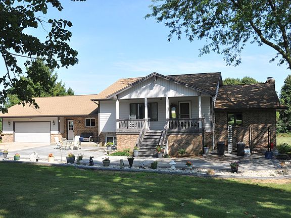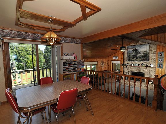 Attractive custom designed 4 bedroom, 2.5 bath tri-level on just under 2 acres of beautiful land. Large kitchen has hardwood floors, baking center and plenty of cupboard space! Dining room with built-in lighted china cabinet. Family room with fireplace. Master bath has jetted tub and heated floors. 1st floor laundry. Rec room with bar, fireplace and patio doors. Patio doors open to private deck. Gigantic backyard has fence that opens on either side of the yard. Come and make this your home today!