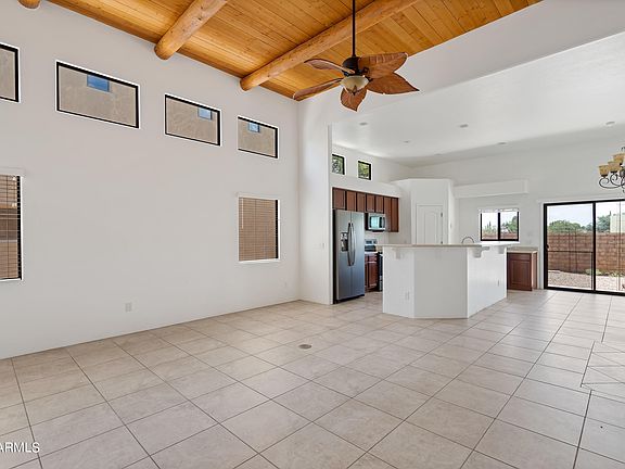 Are you looking for a beautiful home with open floor plan? Then step into this charming Santa Fe home featuring a breathtaking living space with 11' tall ceilings adorned with beautiful Vigas and carpet-free! The kitchen features Corian countertops and stainless steel appliances, beautifully enhanced by a breathtaking panoramic corner fireplace by the dining area! There is also a bonus room in the garage offers versatility - use it as an exercise room, game room, office, you name it! Low-maintenance backyard that features a covered patio and enjoy the delightful Arizona weather. This home is conveniently located near shopping, dining, and entertainment. Don't miss out on this fantastic property!