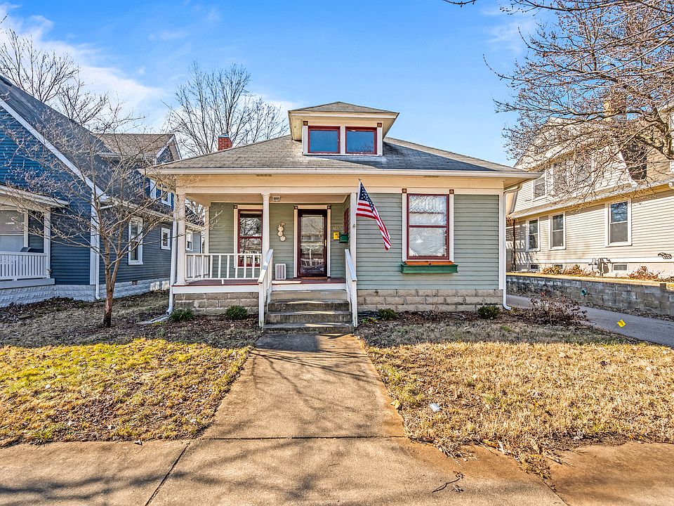 Cute, well maintained home near Donner Park. Inviting front porch. Original hardwood floors & woodwork. Living room, formal dining room, updated kitchen with SS appliances & new cabinets, 2 bedrooms, updated bathroom with new cabinets, laundry room, fully fenced back yard, storage shed, brick patio, parking off the alley & in front of the home. Welcome home!